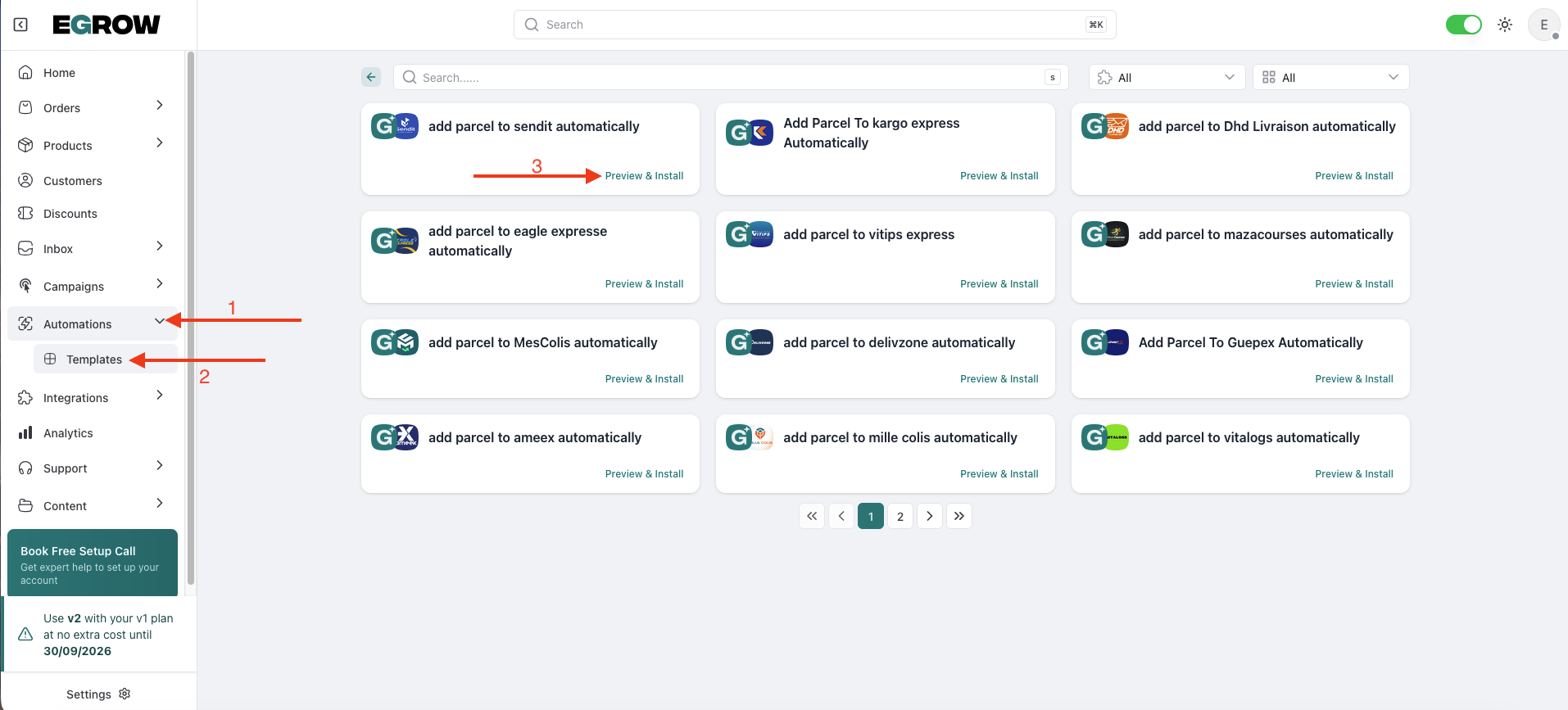 First, locate the pre-built automation template inside your eGrow dashboard.
