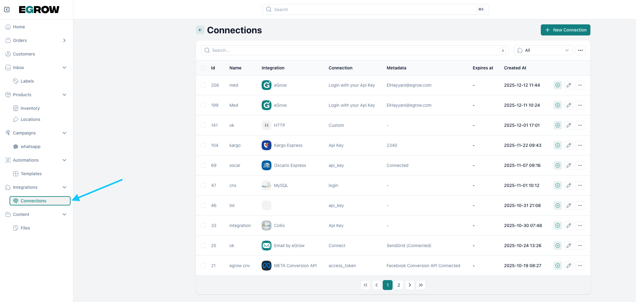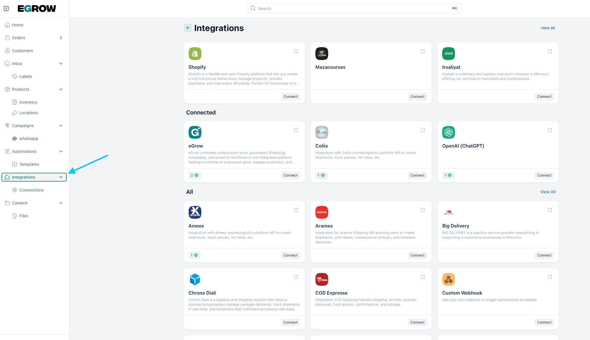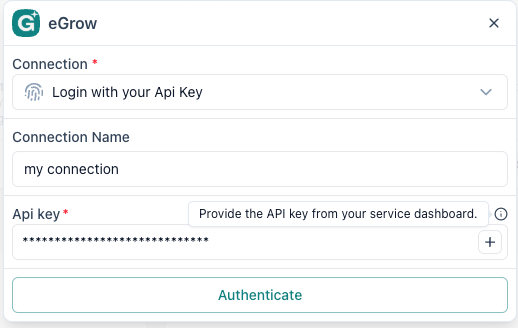 let's connect a new integration (eGrow)