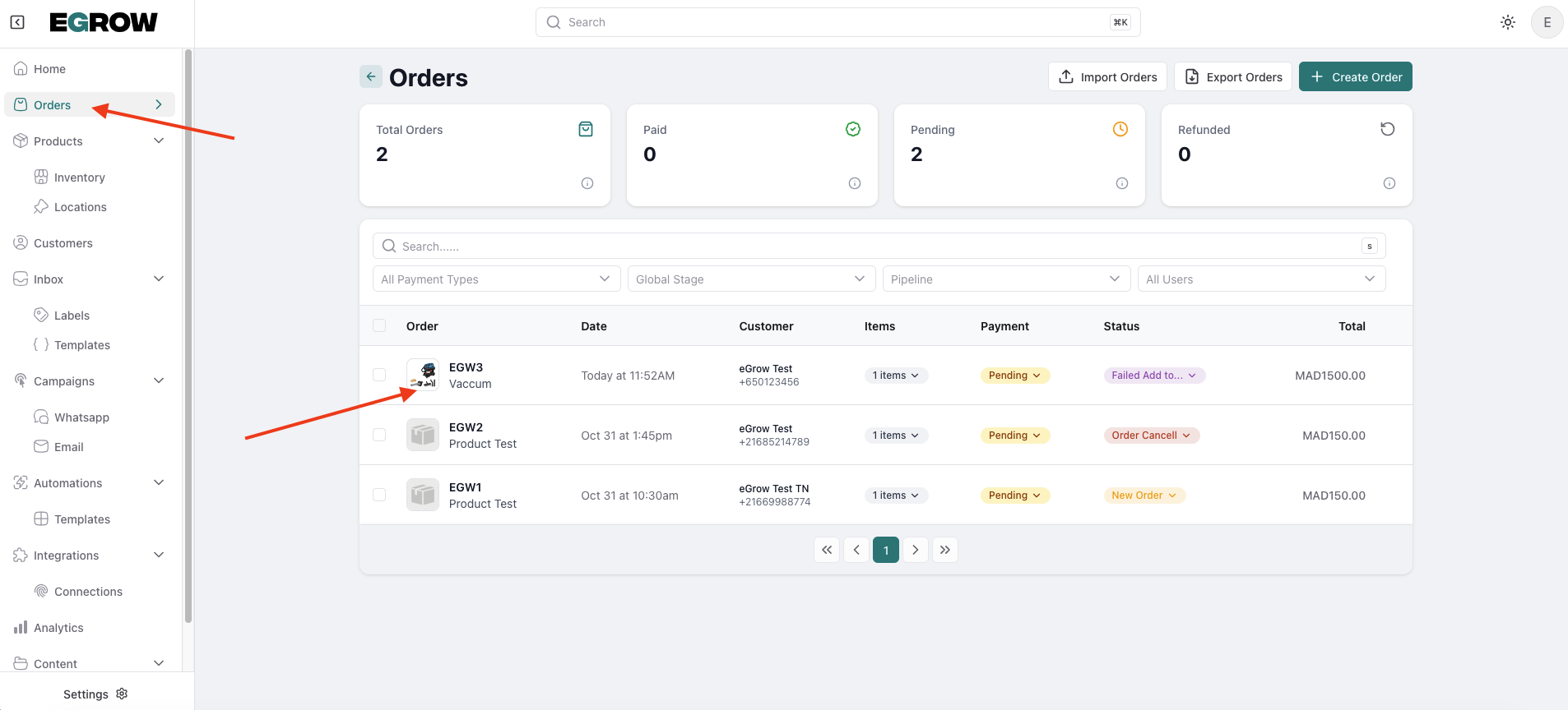 2. Navigate to Orders