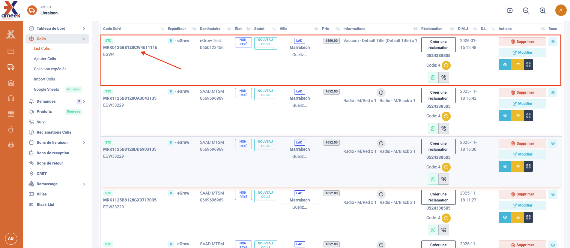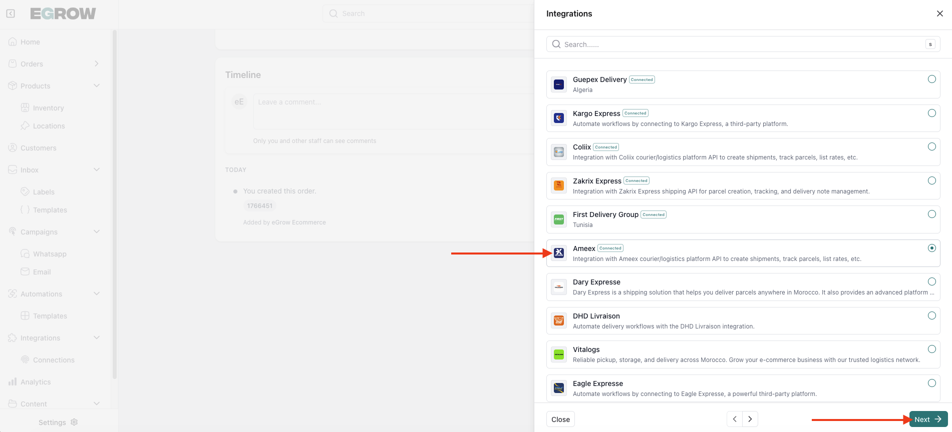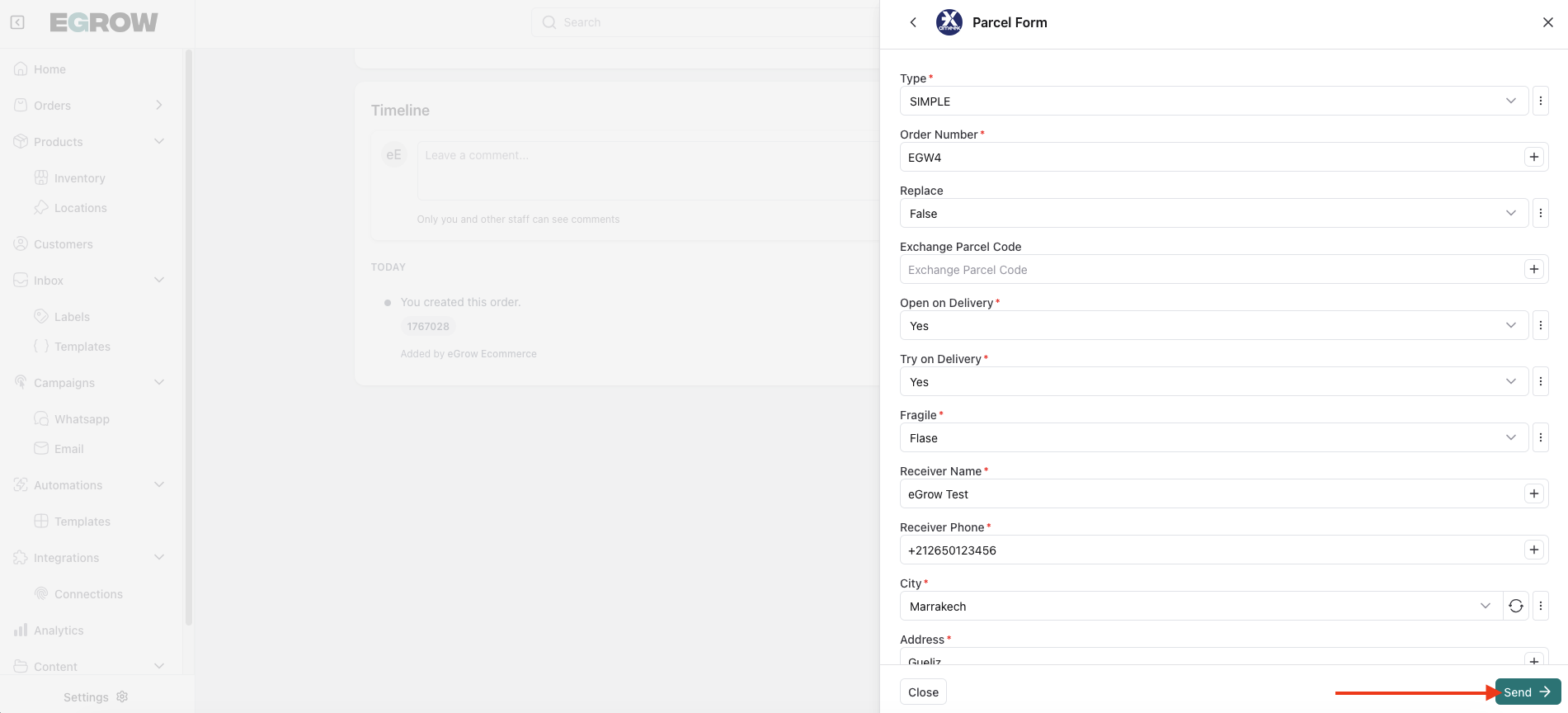 After integrating Ameex with eGrow, you can manually send orders to your courier directly from your eGrow dashboard. Follow the guide below to process a parcel with Ameex.