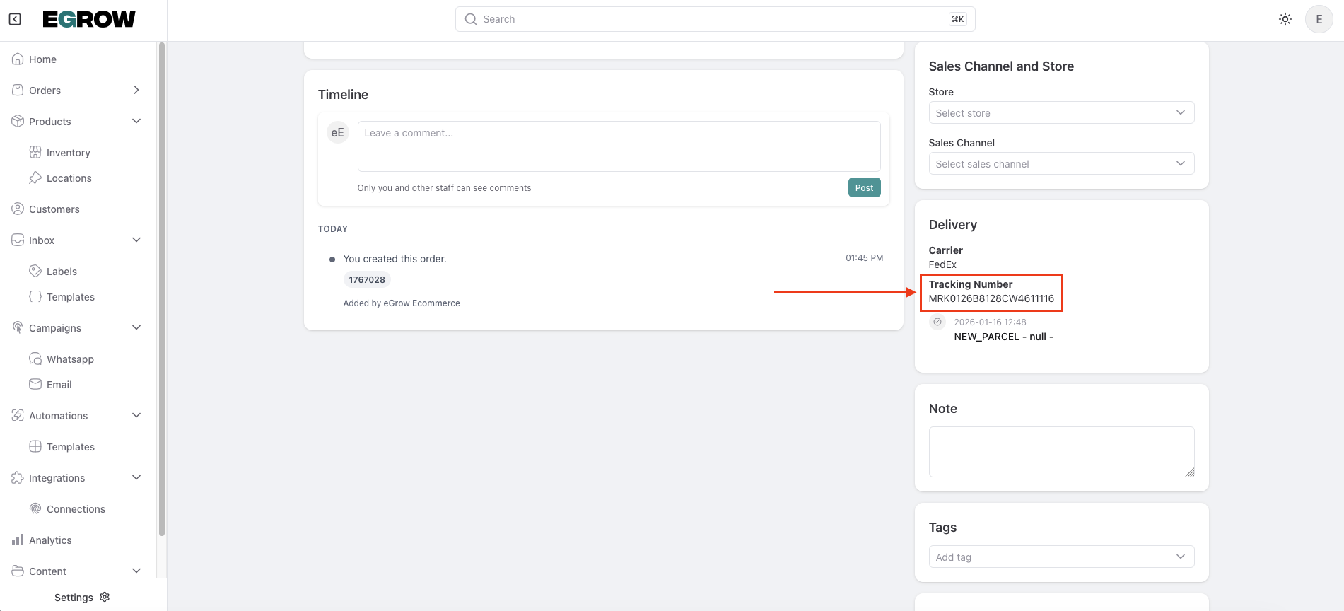 Monitor delivery status inside eGrow when supported