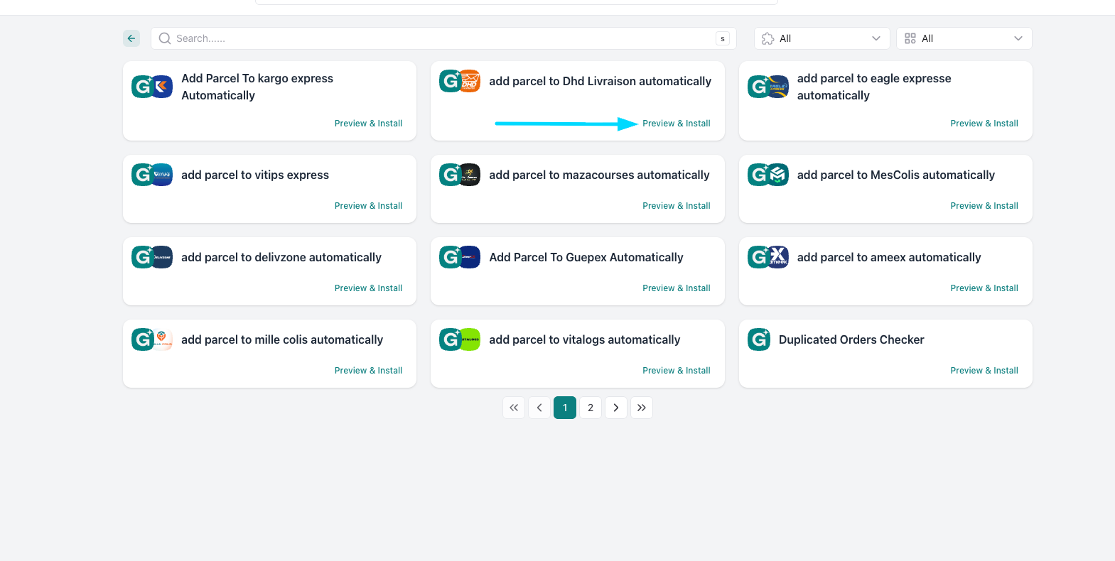 Look for the card titled "Add Parcel To Dhd Livraison Automatically."