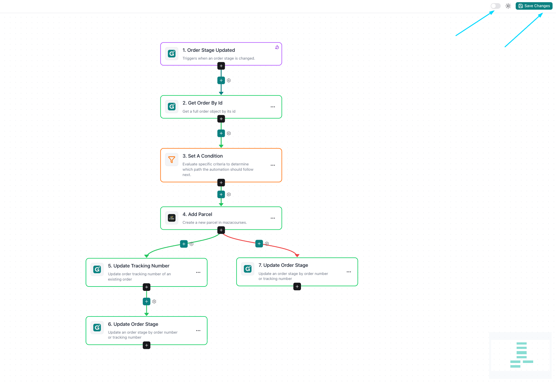 Once installed, you’ll be taken to the automation editor. Everything is already pre-configured for Mazacourses, so you're just one click away from finishing.